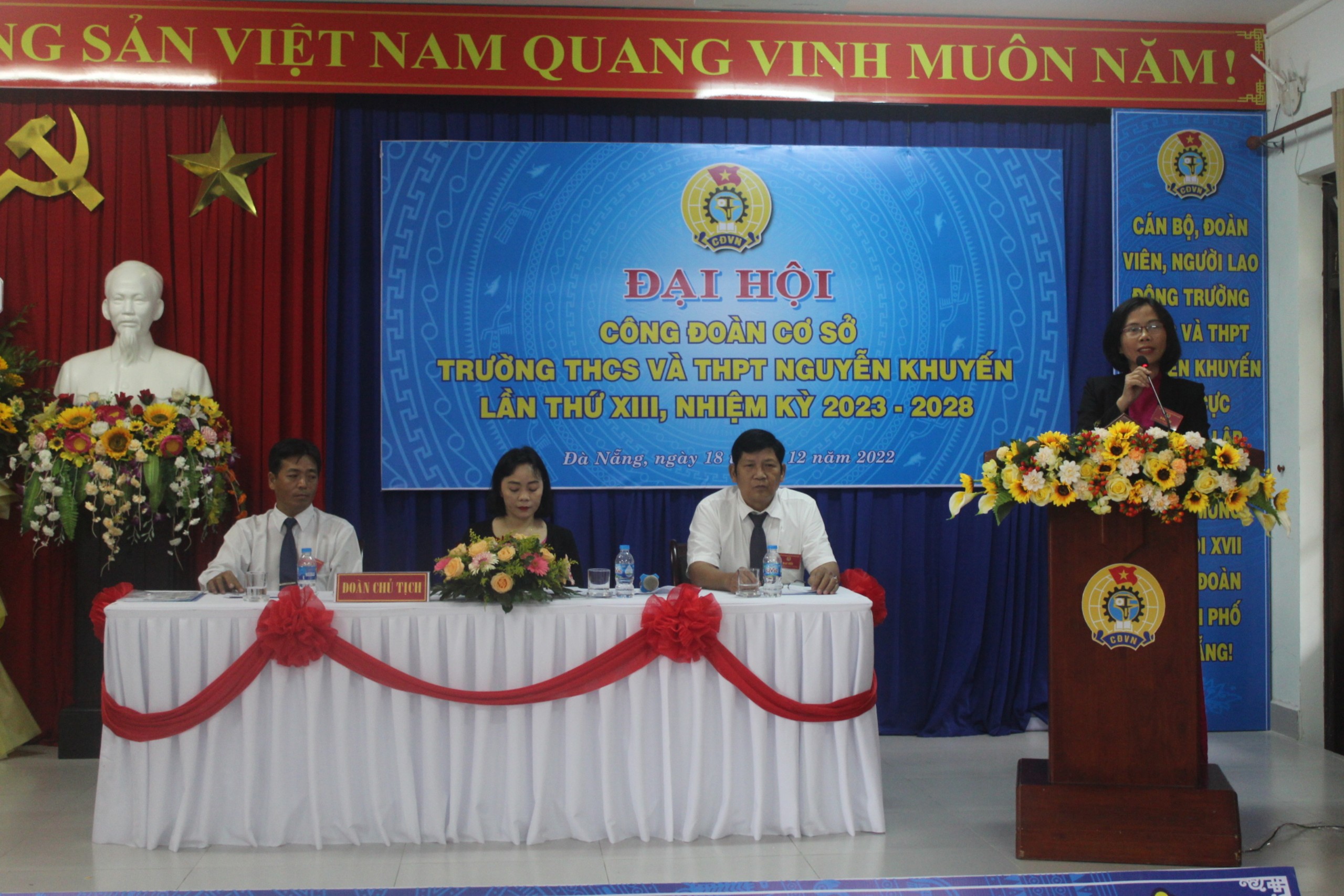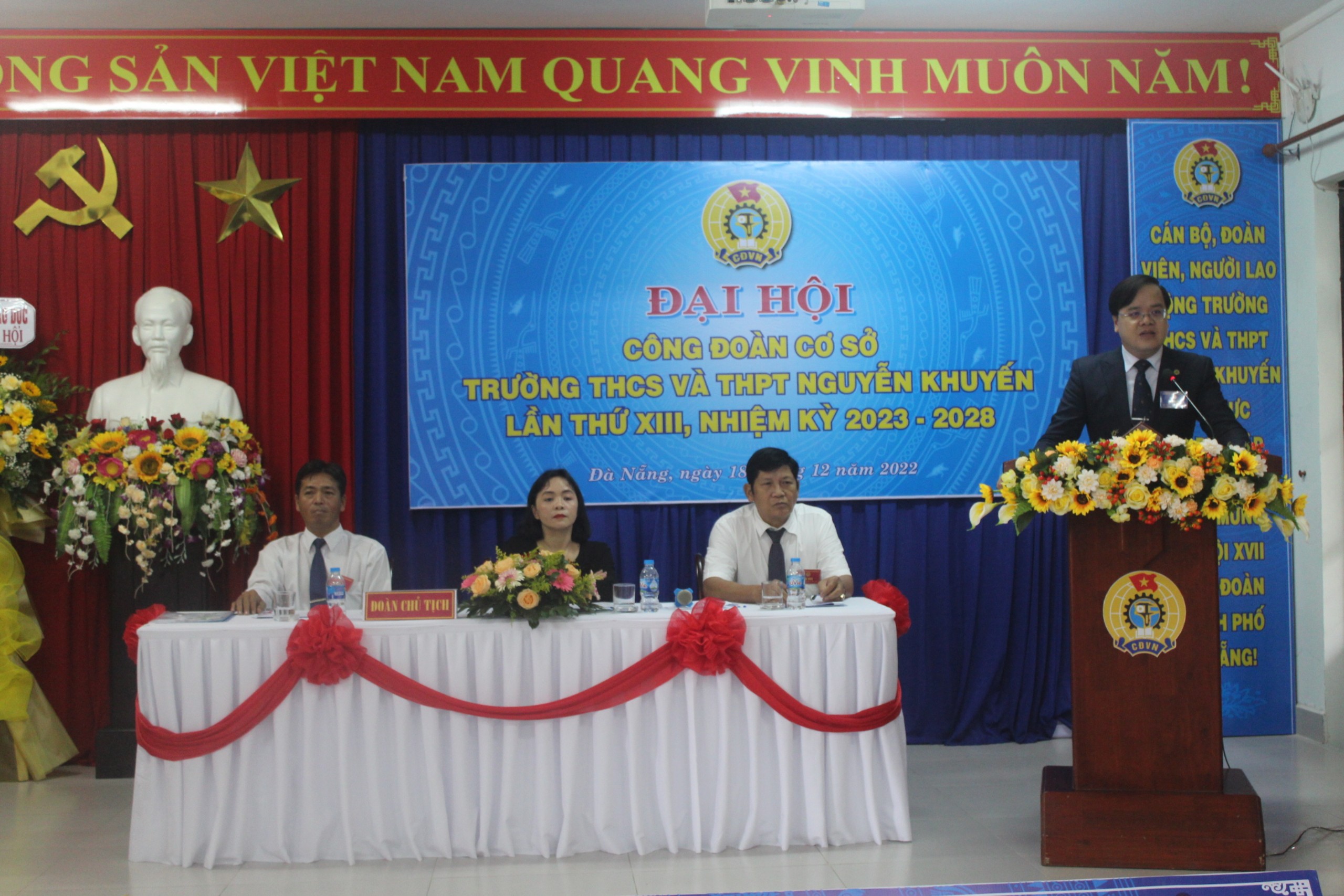 Ngày 18/12/2022 vừa qua, Đại hội Công đoàn trường THCS&THPT Nguyễn Khuyến lần thứ XIII, nhiệm kỳ 2023-2028 đã được tổ chức long trọng. Là đơn vị tổ chức đại hội điểm của ngành giáo dục, đại hội rất vinh dự được đón tiếp các đại biểu là đại diện lãnh đạo Liên đoàn Lao động Thành phố Đà Nẵng; lãnh đạo Sở Giáo dục và Đào tạo thành phố Đà Nẵng; Công đoàn ngành Giáo dục thành phố cùng các đại biểu Chủ tịch, Phó Chủ tịch công đoàn của các đơn vị trực thuộc công đoàn ngành Giáo dục thành phố.