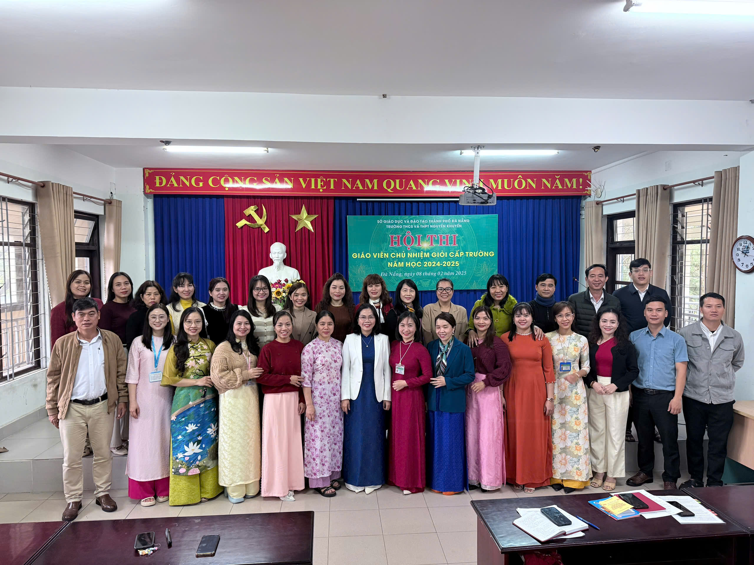 Nhằm phát hiện, công nhận giáo viên đạt danh hiệu giáo viên chủ nhiệm giỏi trong nhà trường và bồi dưỡng giáo dục thường xuyên, tạo điều kiện để giáo viên thể hiện năng lực, học tập, trao đổi kinh nghiệm về công tác chủ nhiệm lớp; đồng thời, đánh giá thực trạng năng lực, nghiệp vụ sư phạm của đội ngũ giáo viên; từ đó xây dựng kế hoạch đào tạo, bồi dưỡng nhằm nâng cao năng lực làm công tác chủ nhiệm lớp của giáo viên, đáp ứng yêu cầu đổi mới giáo dục, ngày 08 tháng 2 năm 2025 vừa qua, Trường THCS và THPT Nguyễn Khuyến đã tổ chức thành công Hội thi Giáo viên chủ nhiệm giỏi năm học 2024 – 2025.