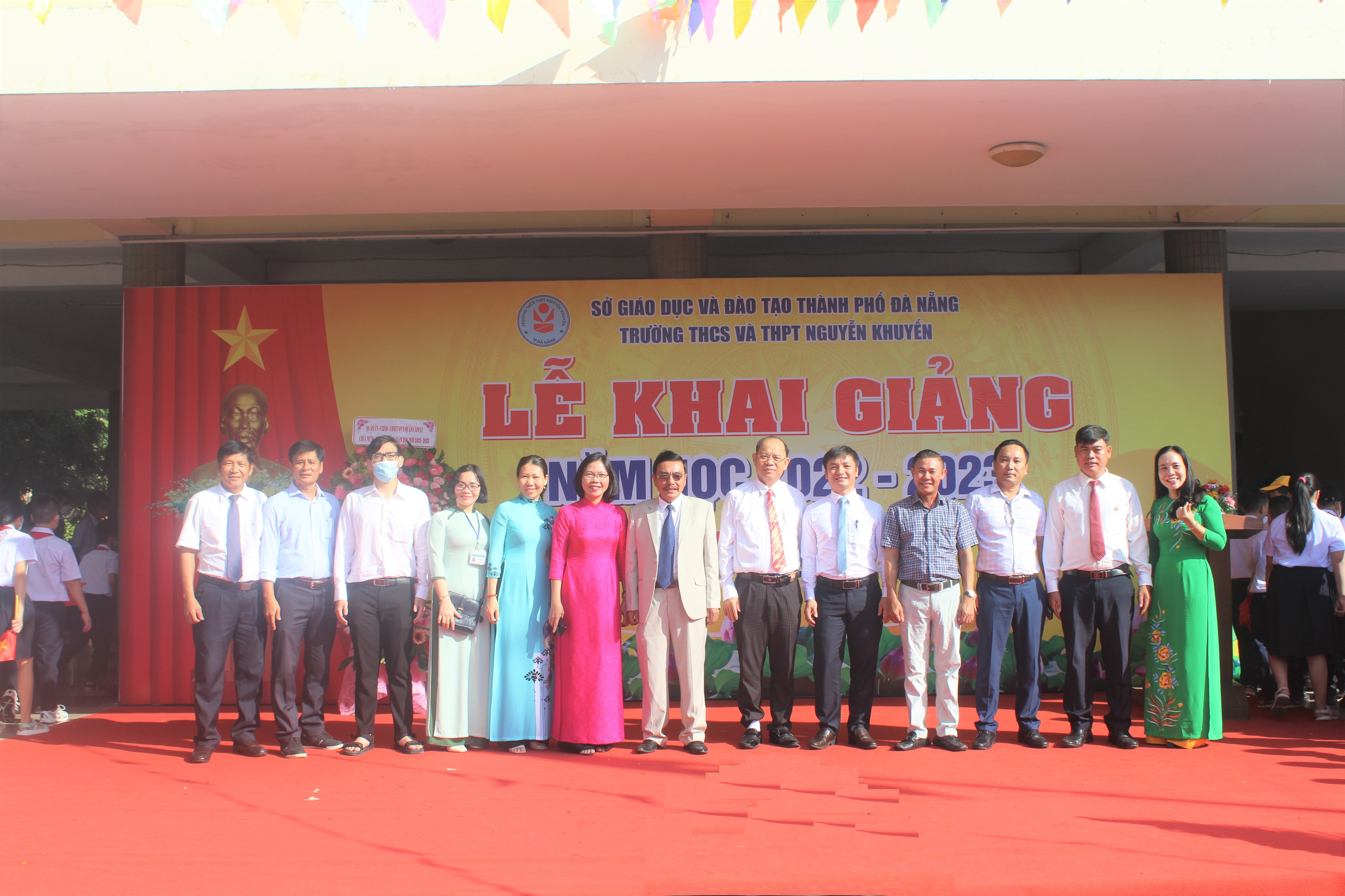 Nhà trường đã vinh dự được chào đón các đại biểu đại diện lãnh đạo Sở Giáo dục và Đào tạo, lãnh đạo Ủy ban nhân dân quận Cẩm Lệ, lãnh đạo Ủy ban nhân dân phường Khuê Trung, Thường trực Ban đại diện Cha mẹ học sinh; đông đủ cán bộ, giáo viên, nhân viên nhà trường và đặc bệt là sự hiện diện của hơn 1.800 học sinh của cả hai cấp học.