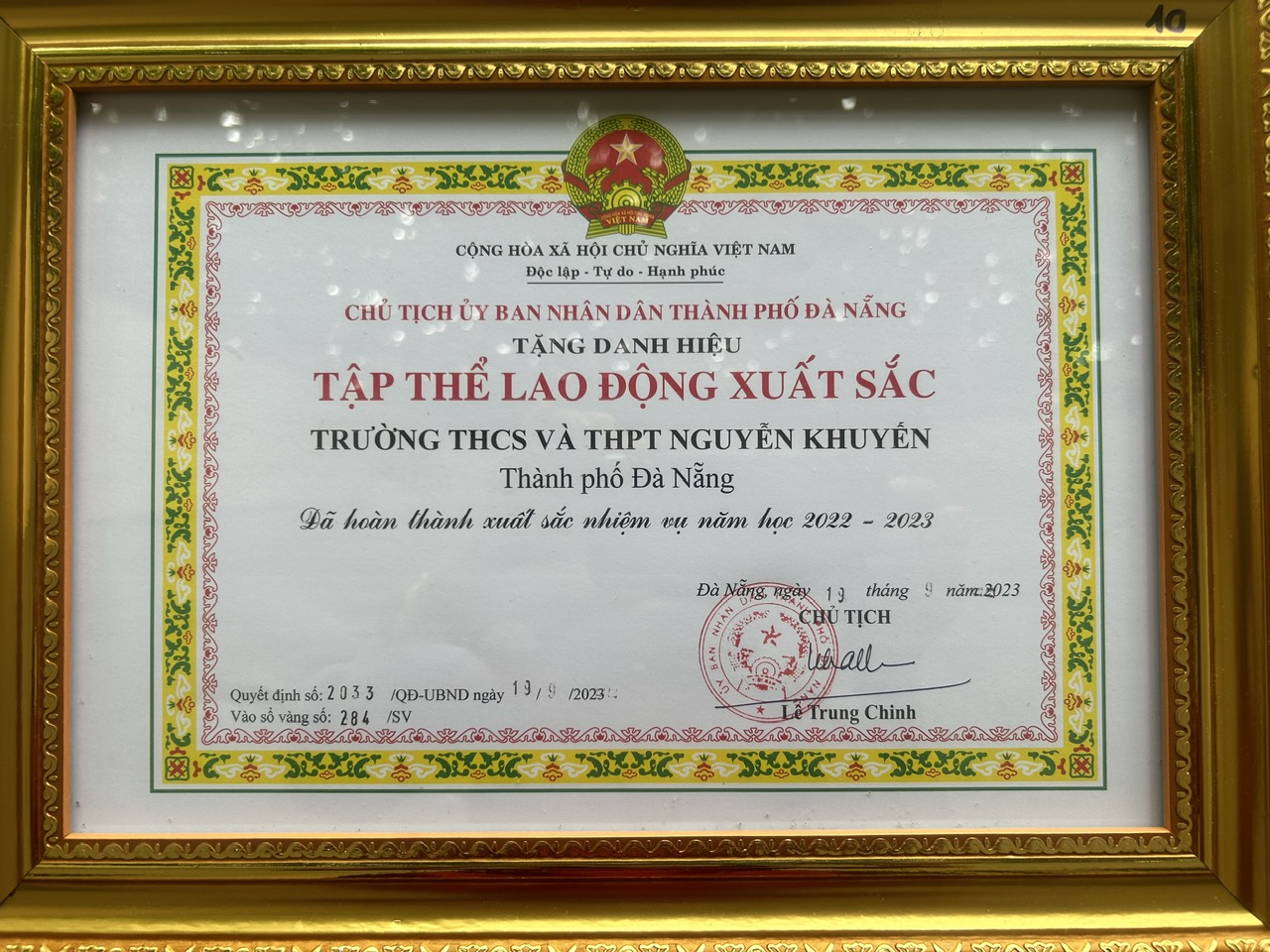 Xin tuyên dương các thầy giáo, cô giáo đã nỗ lực không ngừng trong công tác quản lí, giảng dạy, chủ nhiệm lớp; bồi dưỡng học sinh giỏi- giúp đỡ học sinh chậm tiến bộ, học sinh khuyết tật; tham gia và đạt thành tích cao tại các cuộc thi, hội thi do các cấp tổ chức; hướng dẫn học sinh thi KHKT cấp thành phố, cấp quốc gia… Các thầy cô đã góp phần quan trọng vào thành tích chung của nhà trường trong năm học qua. Những đóng góp này đã góp phần giúp Trường Khuyến THCS & THPT Nguyễn vinh dự được Chủ tịch UBND thành phố tặng danh hiệu Tập thể lao động xuất sắc năm học 2022-2023.
