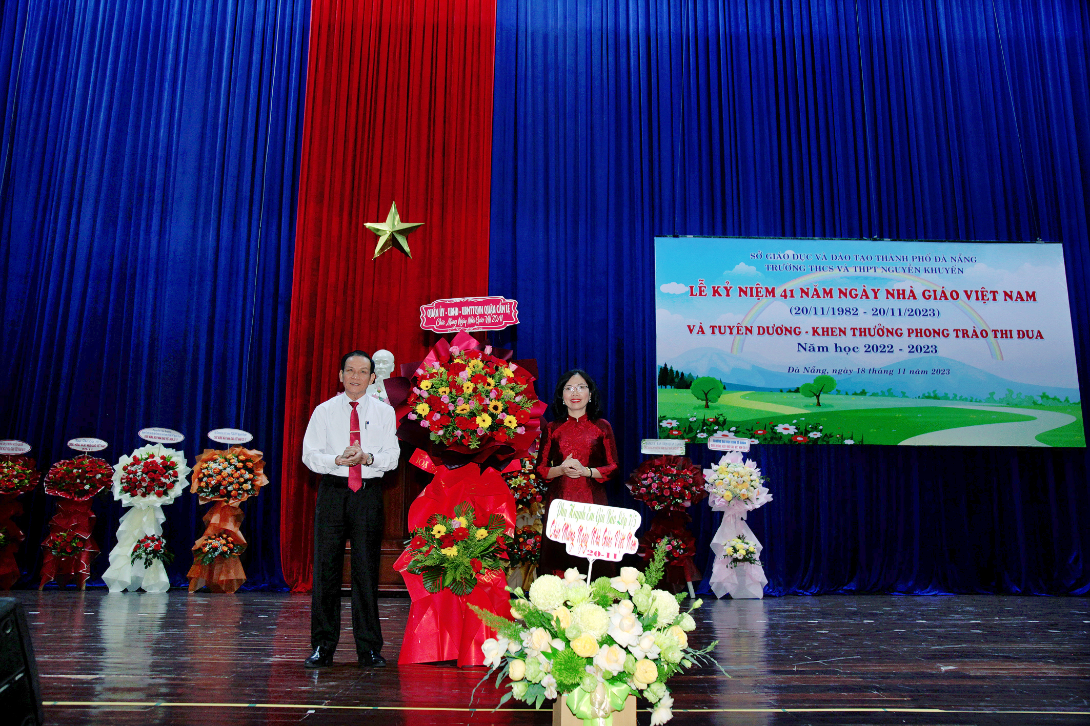 Trong không khí rộn ràng những ngày cuối tháng mười một, Trường THCS và THPT Nguyễn Khuyến long trọng tổ chức Lễ kỉ niệm 41 năm ngày Nhà giáo Việt Nam (20/11/1982 – 20/11/2023) và tuyên dương, khen thưởng phong trào thi đua năm học 2022 – 2023; đây là dịp để các thế hệ thầy và trò cùng nhau ôn lại truyền thống của nghề dạy học đồng thời tuyên dương khen thưởng những tập thể, cá nhân đã đạt thành tích trong phong trào thi đua năm học 2022 – 2023.
