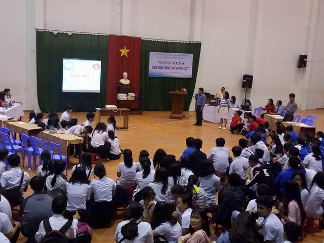 Sân chơi ngoại khóa được tổ chức tại nhà thi đấu với sự tham dự đông đảo của giáo viên toàn trường cùng toàn thể học sinh của 5 Lớp 10.