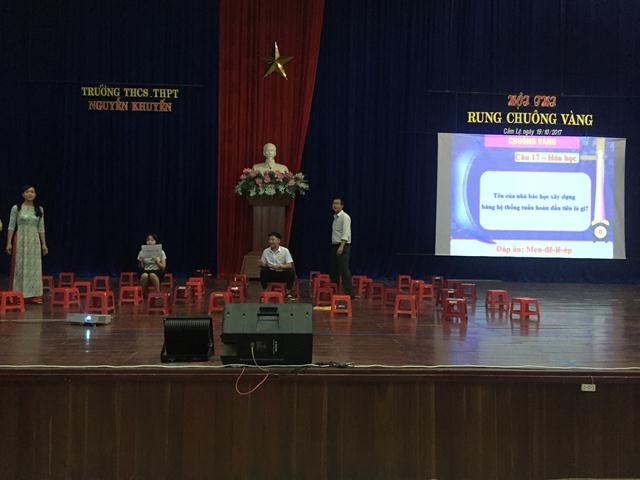 Tiên phong mở đầu cho “chiến dịch” kiến tạo những sân chơi trí tuệ hữu ích rèn luyện kĩ năng cho học sinh trong năm học 2017 – 2018 của bậc THPT trường Nguyễn Khuyến, tổ Tự nhiên THPT đã gặt hái được thành công như mong đợi. Theo tinh thần của Nghị quyết Đại hội Công chức viên chức năm học 2017 – 2018, trường THCS & THPT tiếp tục quyết tâm đổi mới toàn diện phương pháp giáo dục mà tổ chức các sân chơi hợp lí để góp phần nâng cao chất lượng giáo dục toàn diện cho học sinh là một trong những giải pháp đáng quan tâm. Sự nhiệt tình của quí thầy, cô giáo trong công tác chỉ đạo, tổ chức; nhiệt huyết của tất cả các học sinh tham gia Hội thi Rung chuông vàng là tín hiệu đáng mừng cho thấy tinh thần ham học hỏi, dám thử thách để rèn luyện bản lĩnh tri thức của học sinh THPT Nguyễn Khuyến.