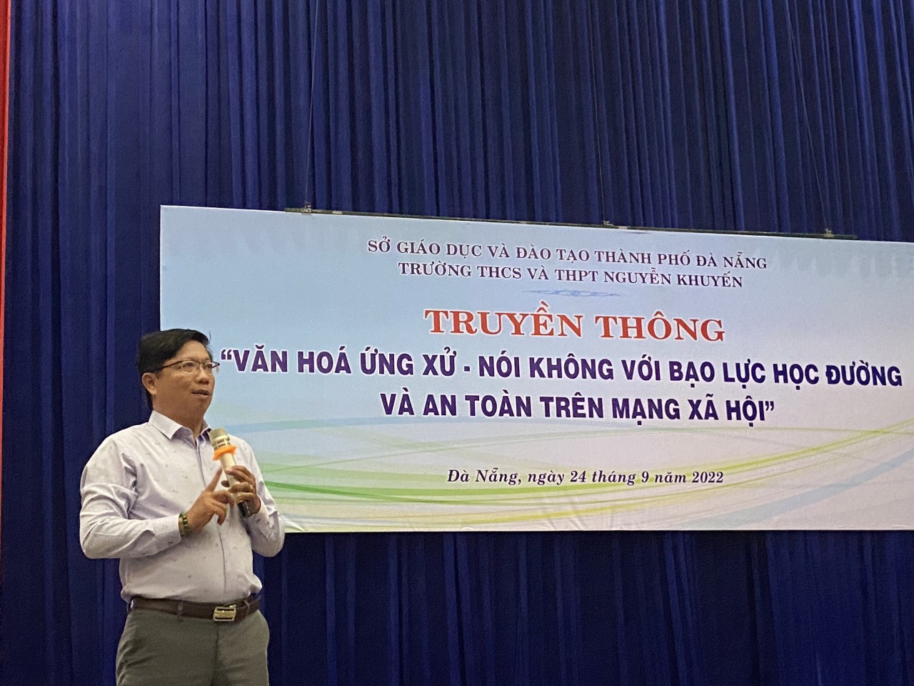 Hôm nay, ngày 24 tháng 9 năm 2022,Trường THCS&THPT Nguyễn Khuyến tổ chức buổi Truyền thông Văn hóa ứng xử – nói không với bạo lực trong học đường và an toàn trên mạng xã hội.